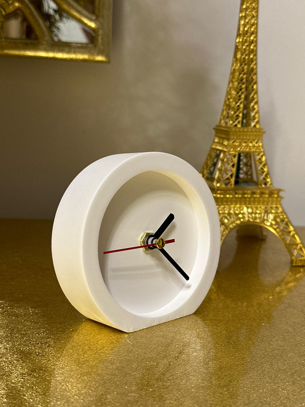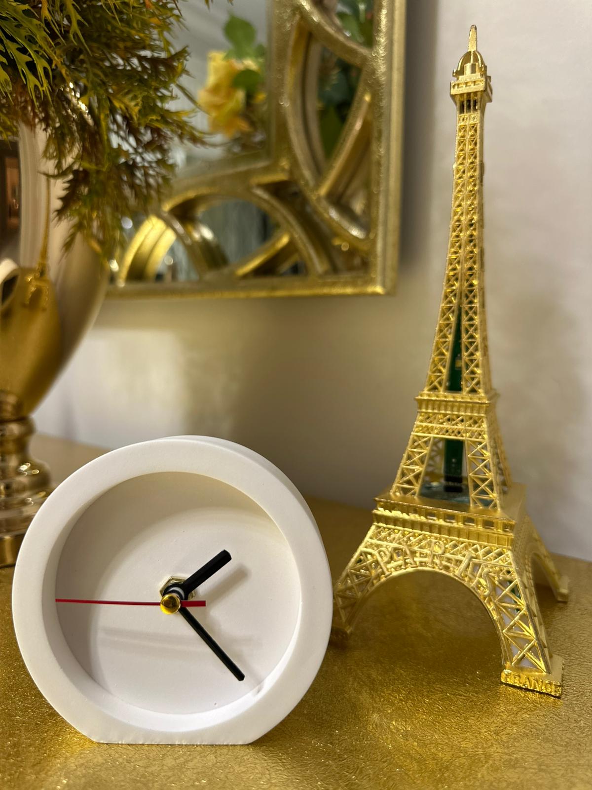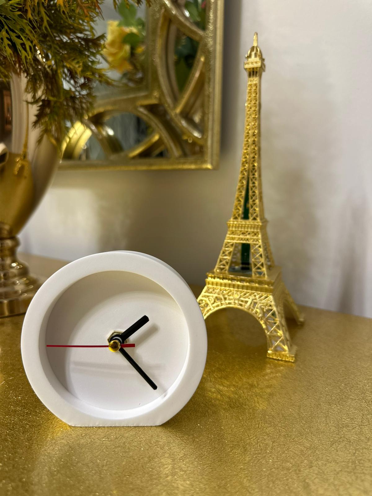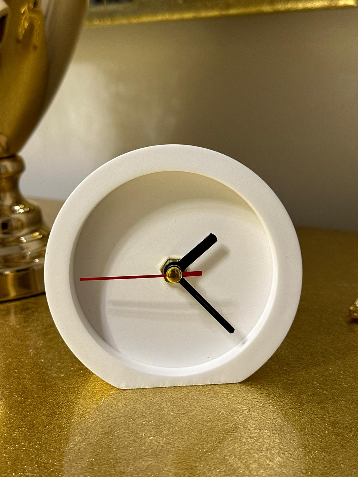 10x10 cm ölçülerindeki taş döküm masa saati, sade formu ve gold detaylarıyla modern dekorasyonun vazgeçilmez parçası. Dayanıklı yapısı ve estetik tasarımıyla çalışma alanlarına, konsollara ve raflara şık bir dokunuş kazandırır. Her bakışta zarafet ve minimalizmi bir arada sunar.